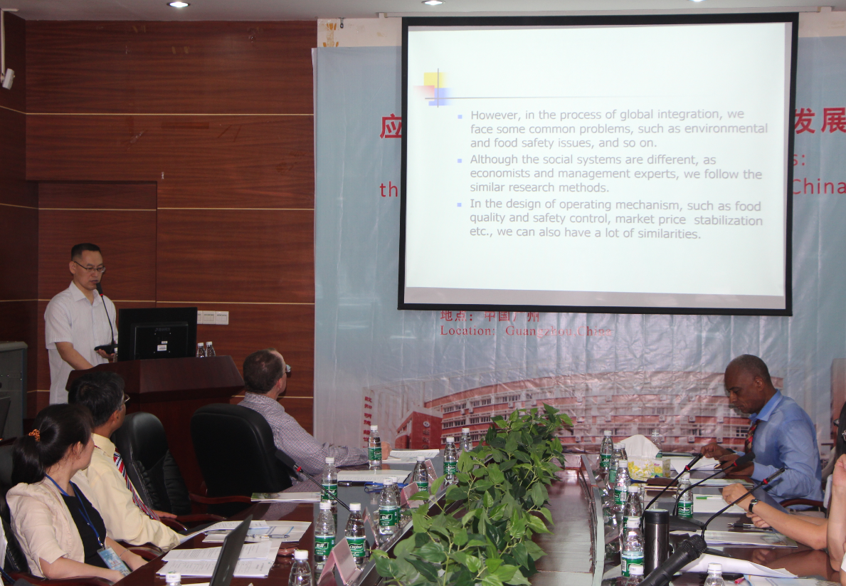 开幕式后,我院姜百臣教授和来自美国路易斯安娜州立大学的Paudel,Krishna P.分别向大会作了题为“Does edible agricultural products price contains sufficient consumer demand information—evidence from Guangdong ,China”和“Actors Affecting the Choice, Intensity, and Allocation of Irrigation Technologies By U.S.”的主题报告,与会代表进行了广泛的讨论。