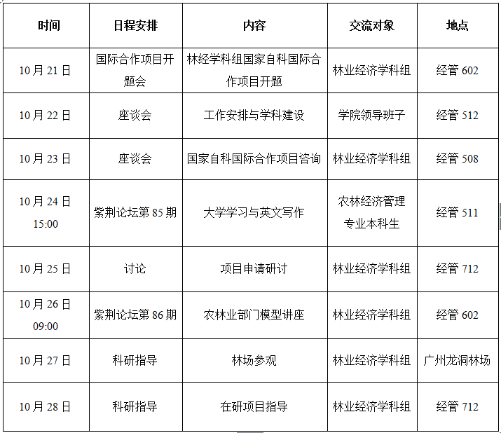 yl6809永利官网丁颖讲座教授、瑞典农业大学教授公培臣于 2017 年 10 月 21-28 日在我院讲学,公培臣教授长期从事森林经营管理和林业经济效益评价研究,主持开展了一系列世界前沿性的研究课题,主要在森林经营决策优化模型、森林价值评估、木材供给理论与市场模拟、森林随机动态优化模型等方面具有独到的见解,并取得了一系列具有世界领先水平的研究成果。以下为其讲学安排,欢迎广大师生积极参加。