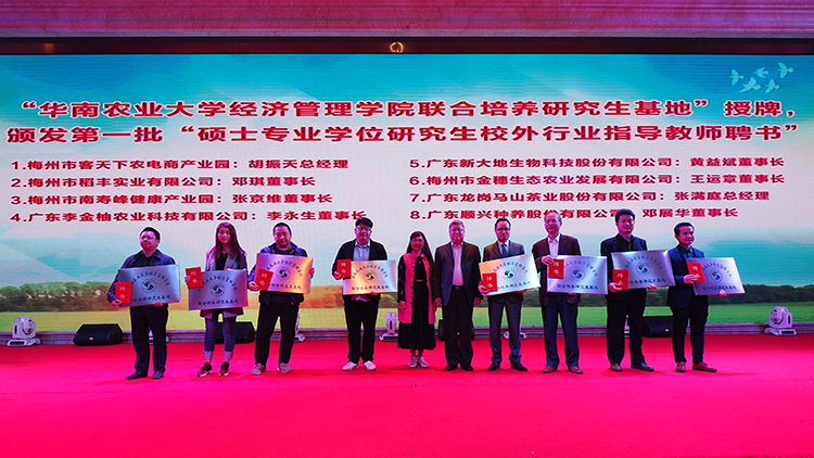 yl6809永利官网首次在梅州建立以梅州市农业局为牵头单位的研究生联合培养基地群。通过遴选,客天下农电商产业园、稻丰实业有限公司、李金柚农业科技有限公司等8家企业入选“yl6809永利官网联合培养研究生基地”,并选聘8位企业负责人为“硕士专业学位研究生校外行业指导教师”。选聘优秀企业家和技术人才担任研究生行业导师,开展现场教学、承担案例教学课程、举办专题讲座等,力求在人才、研究平台、基础设施等方面实现研究生培养的资源共享。