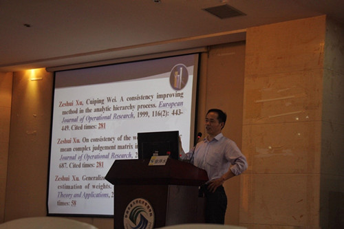 报告会上,徐教授结合自身研究经历跟师生们分享了开辟不确定语言决策、直觉模糊层次分析法、直觉模糊信息集成与聚类、直觉模糊微积分、犹豫模糊信息集成聚类等新方法体系的过程。同时,也分享了如何阅读英文文献,选择研究问题,国际期刊论文写作投稿的经验。徐教授指出,大数据是当下一个热门和有研究价值的方向,可以应用于多个学科之中。而针对当下研究生的培养模式,徐教授认为通过组会讨论的形式是培养学生科研能力的重要方式。