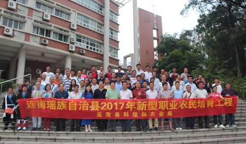为贯彻落实党中央、国务院和省委、省政府关于大力培育新型职业农民的部署,加快构建新型职业农民队伍,壮大新型农业生产经营主体,清远连南县以培训新型农业经营主体带头人和现代青年农场主,实现现代青年农场主培育和新型农业经营主体带头人轮训计划,提升新型职业农民整体水平,5月12至14日,由清远市农村专业技术协会主办,我院承办的“连南县2017年新型职业农民培育”培训班在我院如期举行。