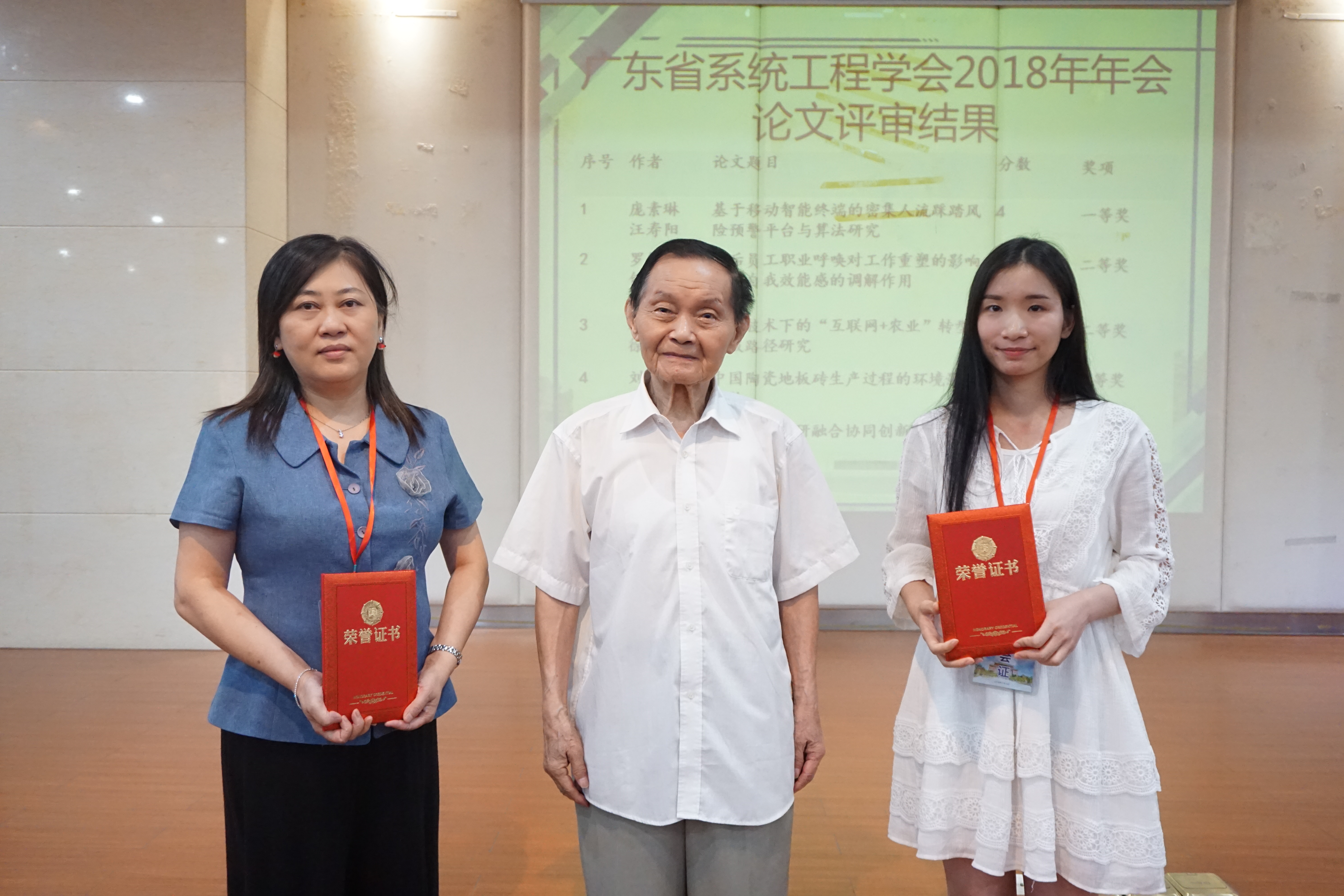 主题报告结束后,学会往届理事长分别为本次年会的5篇优秀论文颁发了一等奖、二等奖和三等奖。李丽教授还即兴写了一首诗庆祝学会成立30周年:“系统工程一树高,广粤学者弄丝绦,若问繁茂谁营造?学会同仁助学高!”