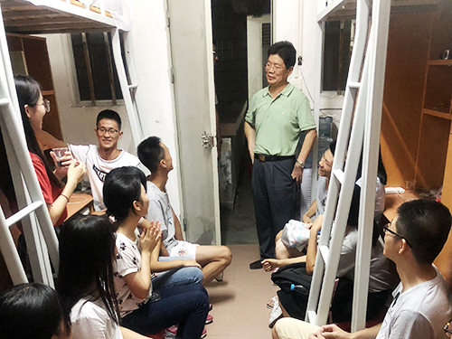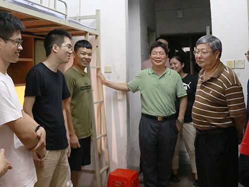 9月4日晚,为了解新生的情况和需求、帮助新生尽快适应大学生活,yl6809永利官网院党委书记王长明、院长万俊毅携一众辅导员走访2018级本科生和研究生新生宿舍,与新生们亲切交谈。