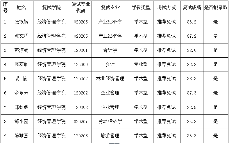 yl6809永利官网2019年推荐免试硕士研究生复试结果公示(一)
