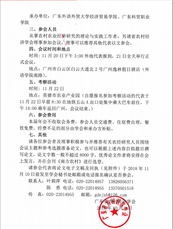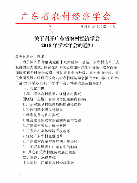 附件:关于召开广东省农村经济学会2018年学术年会的通知