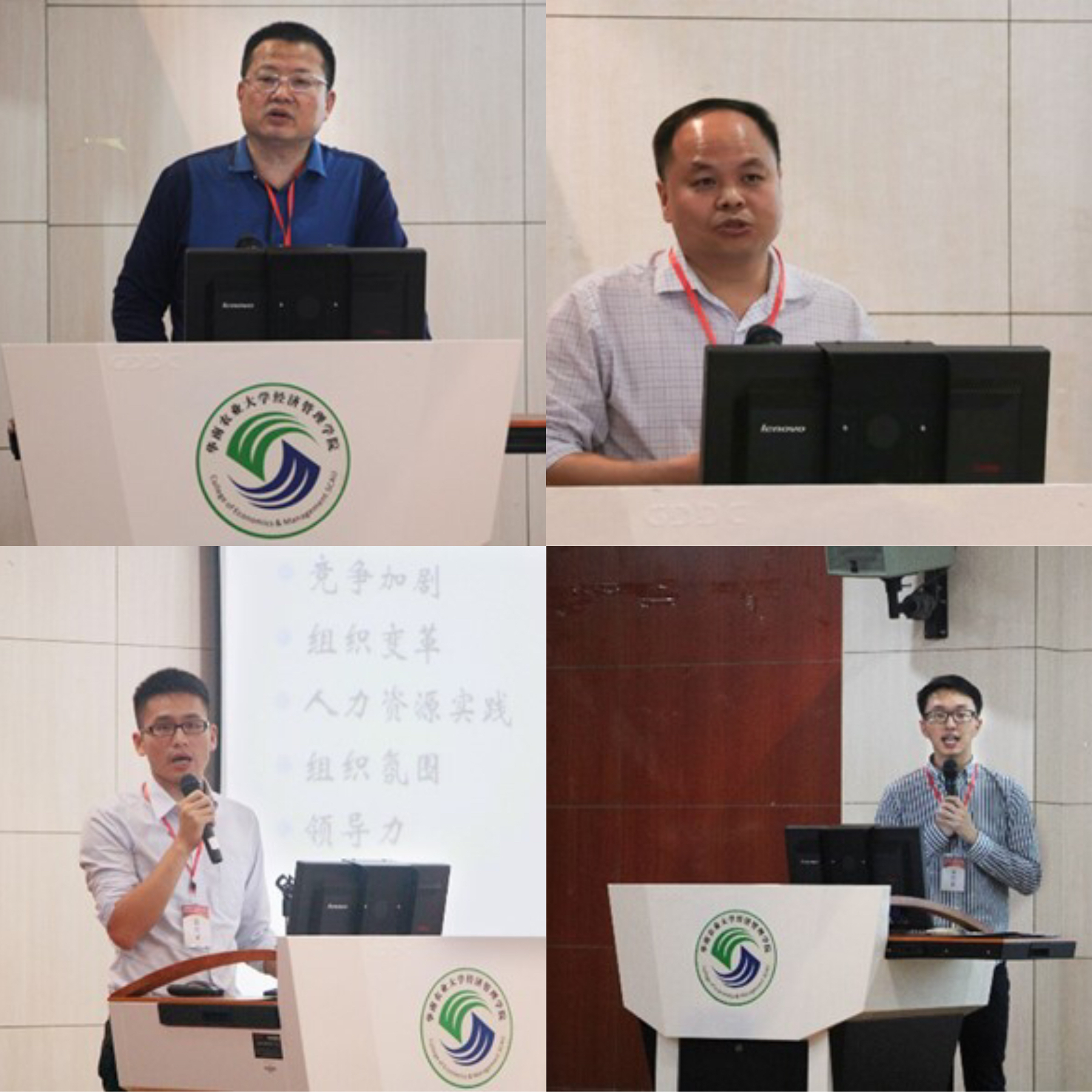 下午的会议由主题报告二和三个分论坛组成。主题报告二中,广东金融学院工商管理学院周国林教授主持,南京理工大学周小虎教授、广州大学工商管理学院朱伟春教授、华中科技大学管理学院王海江副教授、广州大学工商管理学院彭坚讲师分别进行主题报告,为我们分享了《城市创业人才竞争力评价的探索与思考》、《给予中国文化的原生性领导力理论的构建和测量:以儒家文化为例》、《工作不安全感:研究进展及未来展望》、《累并快乐着:服务型领导的收益与代价——基于工作家庭资源模型视角》等主题演讲。主讲嘉宾们就各自研究领域的热点问题和最新研究成果为我们作了分享,并指出这些研究领域未来有价值的研究方向。随后进行的分论坛由人力资源管理、组织行为和青年学者圆桌论坛组成,南开大学商学院崔勋教授、华南理工大学工商管理学院王雁飞教授、广州大学工商管理学院朱伟春教授分别主持论坛。共有十五位优秀的学者在会议中做出报告,青年学者圆桌论坛中华中科技大学王海江教授、华南理工大学工商管理学院王红丽副教授则为论文提供了指导意见。