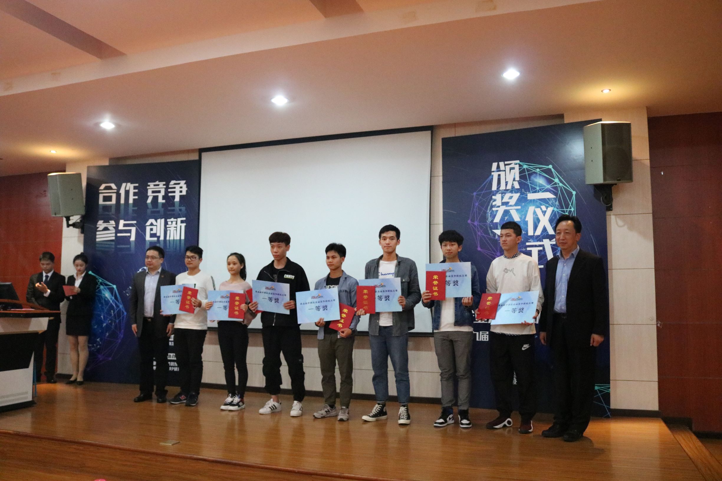 揭牌仪式之后,大赛主办方代表朱晓武教授为大家宣读第九届华南区总决赛成绩。yl6809永利官网由黄林海、李绰盈、廖冰清等三位同学组成的“城南”队,佛山科学技术学院的“一羊千喜”、“白隐”队荣获特等奖。万俊毅、戚桂杰等领导与嘉宾为获奖学子颁奖。