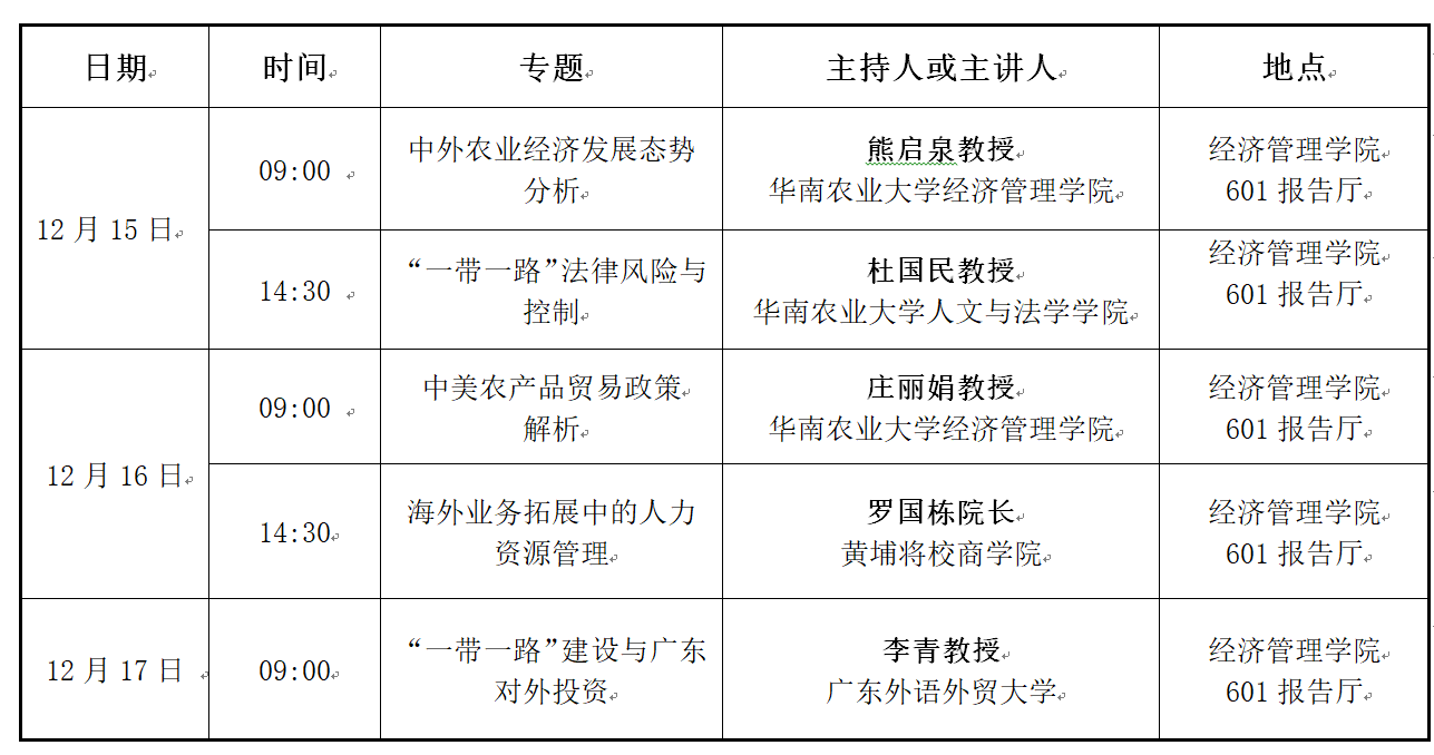 yl6809永利官网涉农企业涉外经营管理培训班(第一期) 课程表