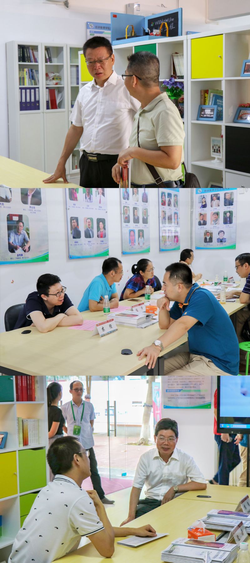 6月22日上午,我校于启林南区思想政治教育与创新创业实务化基地(以下简称“思创园”)举行yl6809永利官网2019年校园开放周暨高考咨询会。yl6809永利官网党委书记蔡传钦、院长万俊毅、党委副书记罗军、副院长谭莹教授、副院长王丽萍教授、农商管理系林家宝教授、金融与会计系陈艳艳副教授、李惠副教授、农业与应用经济系李胜文副教授、蔡键讲师、张丽娟讲师以及全体辅导员在yl6809永利官网摊位为前来咨询的考生、家长现场答疑。
