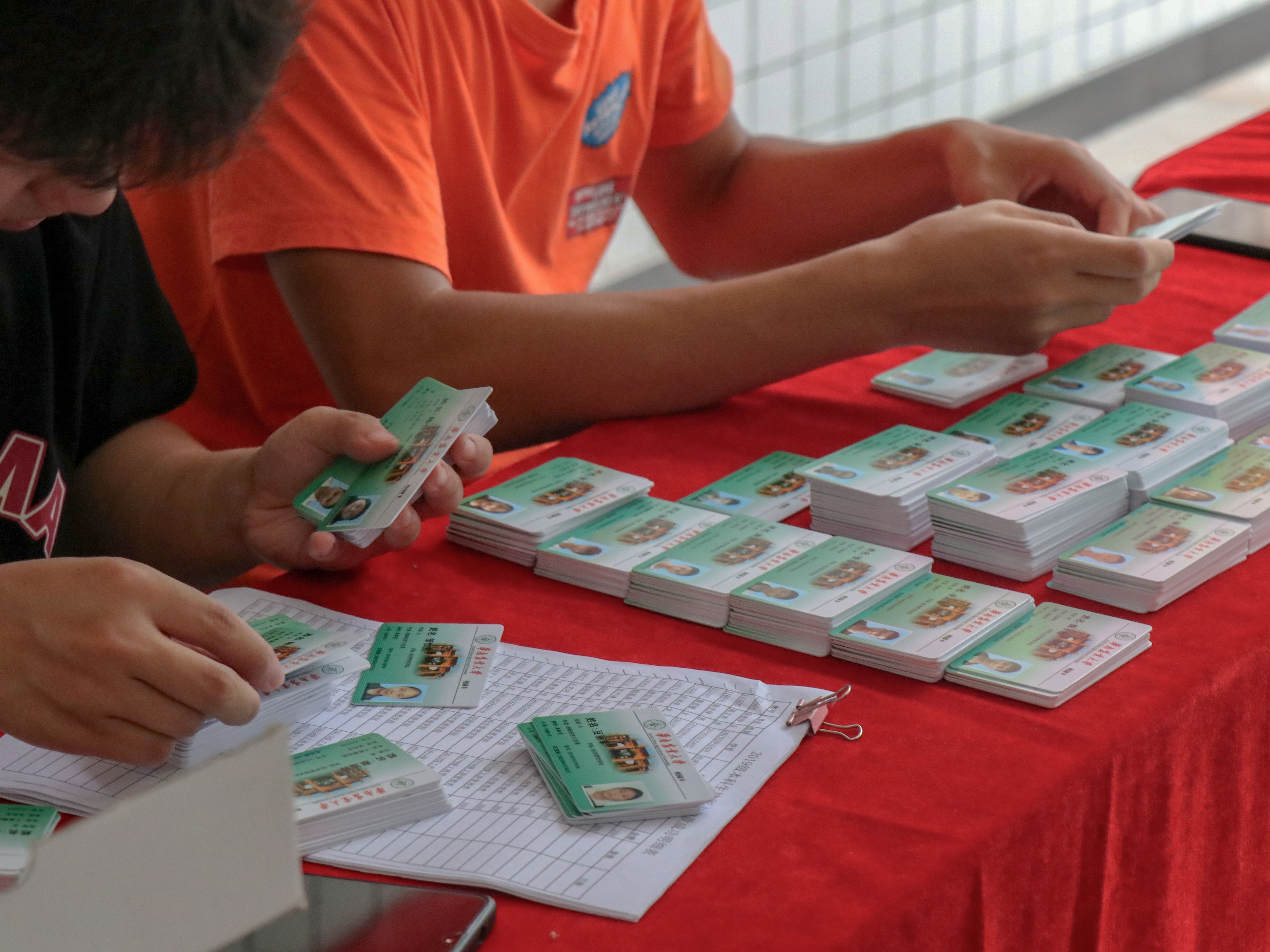 在新生注册点,准备工作均就绪,快捷注册通道、户口迁移、绿色通道等工作也已安排妥当,相关工作人员正做进一步的核对工作,指导老师、学生干部也正为明天的迎新工作做相应检查。班级的兼职辅导员和心晴使者们坚守在自己的岗位上,及时为新同学解答疑惑,为他们提供力所能及的帮助。