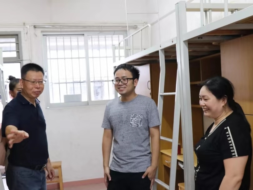 学院领导对此次迎新工作也十分重视,8月25日下午15:00,我院党委书记蔡传钦携辅导员们走访了新生宿舍和注册点等地,指导了新生入学准备工作。在参观宿舍的过程中,蔡书记、辅导员们与新同学及其家长热切交谈。“有任何问题都可以直接找老师,我们都会尽全力去解决”,书记的话让家长和学生的心里倍感温暖。