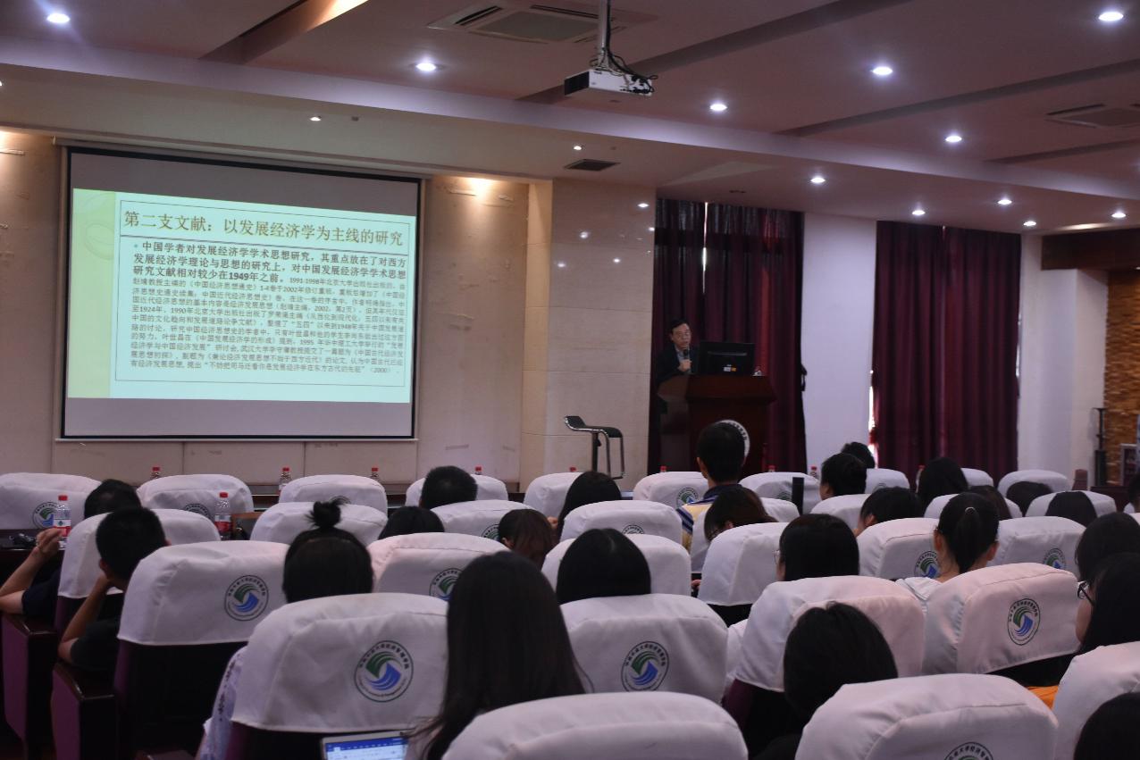 10月18日下午,《中国工业经济》杂志社社长张其仔、编辑部主任王燕梅、责任编辑覃毅应邀来访我院。张其仔社长在601报告厅作了题为“中国发展经济学70年”的讲座,讲座由经管学院院长米运生教授主持,部分教师代表及百余名研究生聆听了讲座。