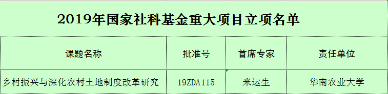 年度国家社科基金重大项目立项名单公布》。我院米运生教授申报的课题《乡村振兴与深化农村土地制度改革研究》获立项