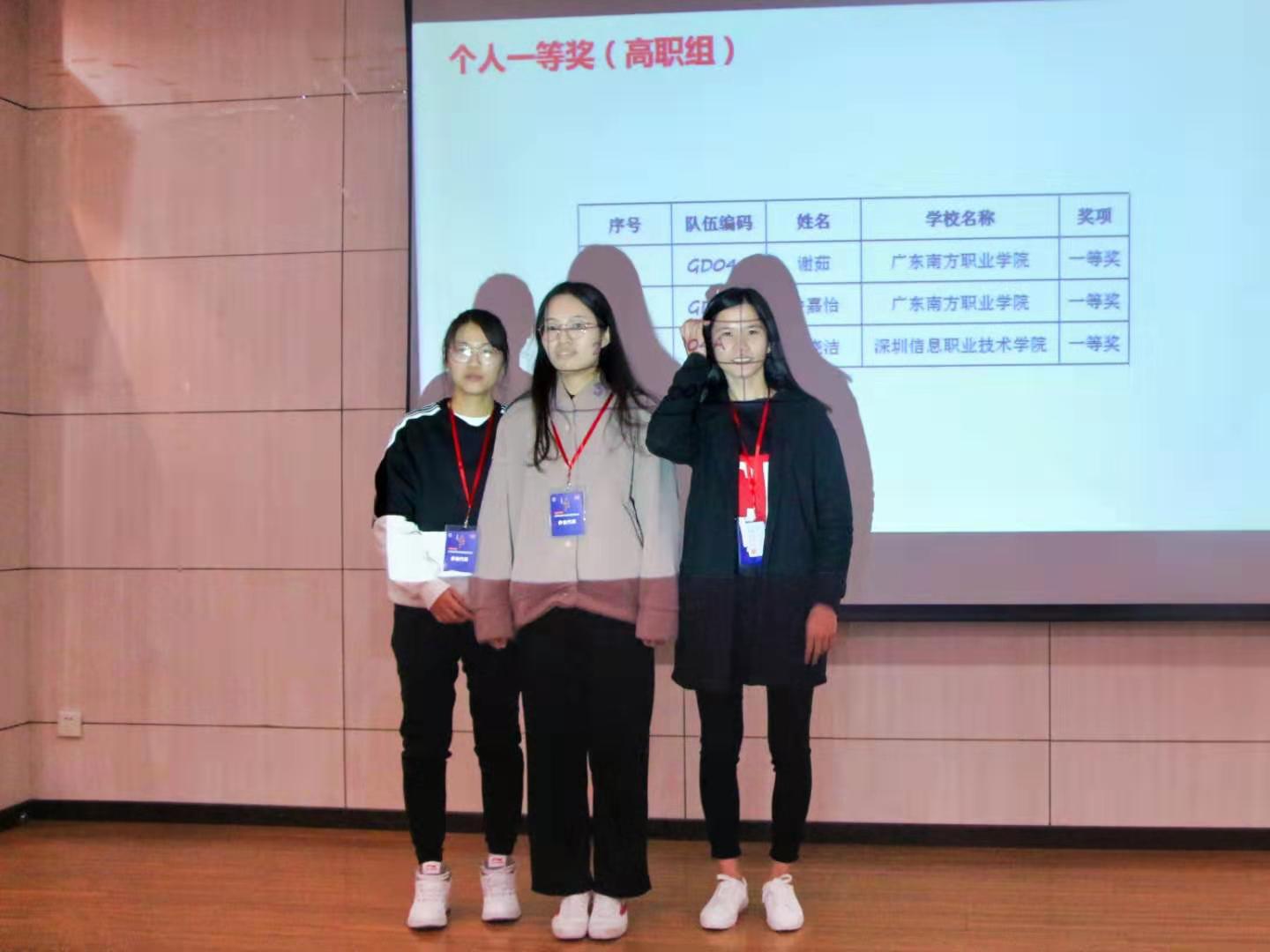 经过一天的比拼角逐,广东技术师范大学代表队和深圳信息职业技术学院代表队则分别获得了本科组和高职组的团队冠军,广东白云学院黄伟龙同学和广东南方职业学院谢茹同学分别获得了本科组和高职组的个人第一名。至此,比赛在颁奖典礼的掌声中完美落幕。