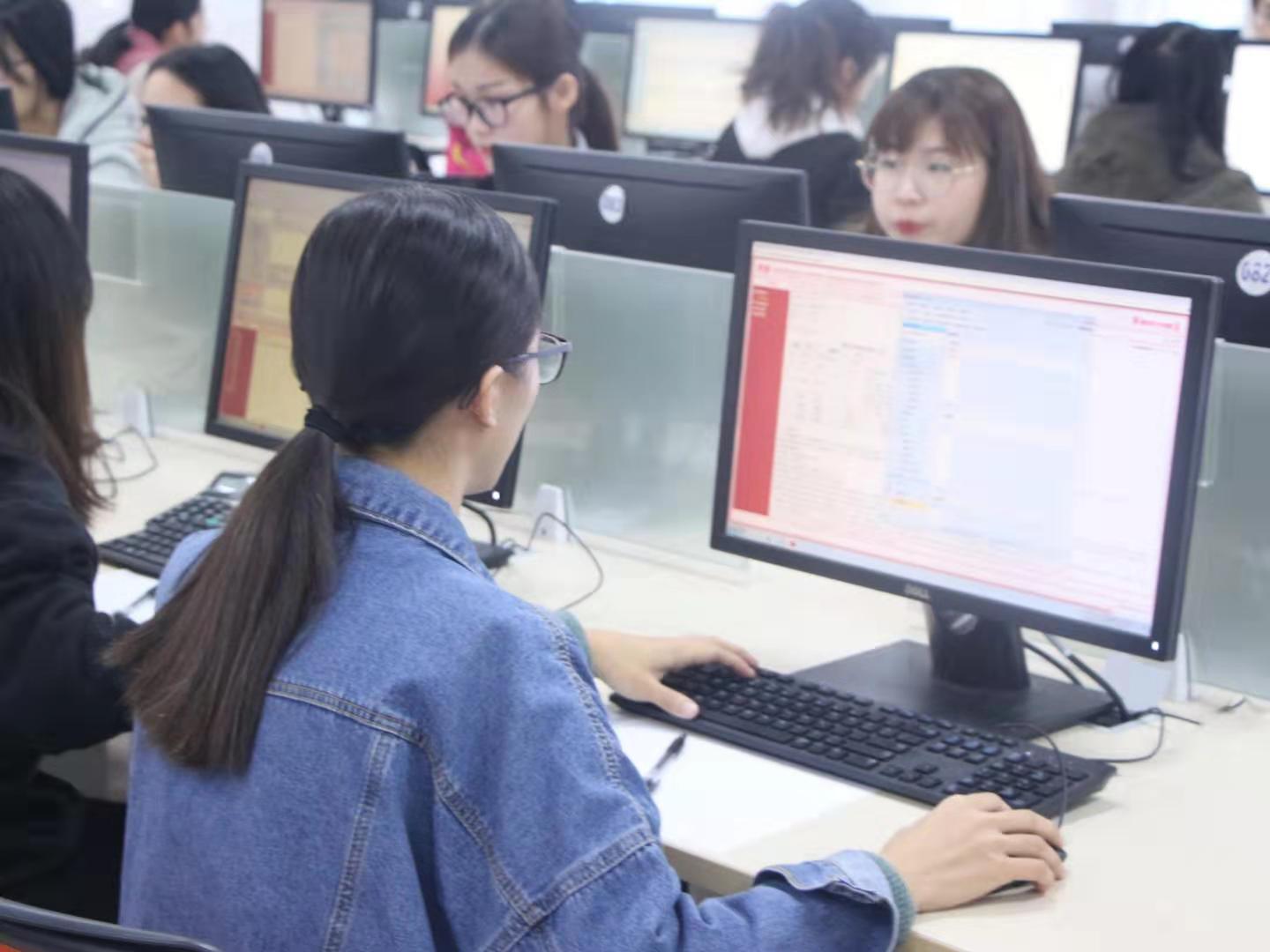 大赛分为信息化竞赛和管理会计竞赛两个环节,信息化竞赛环节采用单人多岗独立竞赛模式,而管理会计竞赛环节采用团队竞赛方式进行。比赛现场气氛紧张,参赛选手答题时认真严肃、聚精会神。