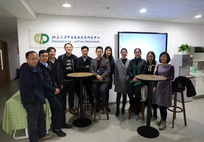 12月14日,我院先后赴北京大学中国经济研究中心(CCER)与中国农业政策研究中心(CCAP)进行了座谈学习。北京大学中国经济研究中心(CCER)主任赵耀辉、中国农业政策研究中心(CCAP)主任黄季焜、团队教研成员罗仁福、侯玲玲、刘承芳、易红梅、林玉仙等分别参加了交流座谈会。会议主要就农业农村政策的研究方向、科研团队建设与合作进行了深入交流讨论,并达成了科研建设与人才培养的初步合作意向。
