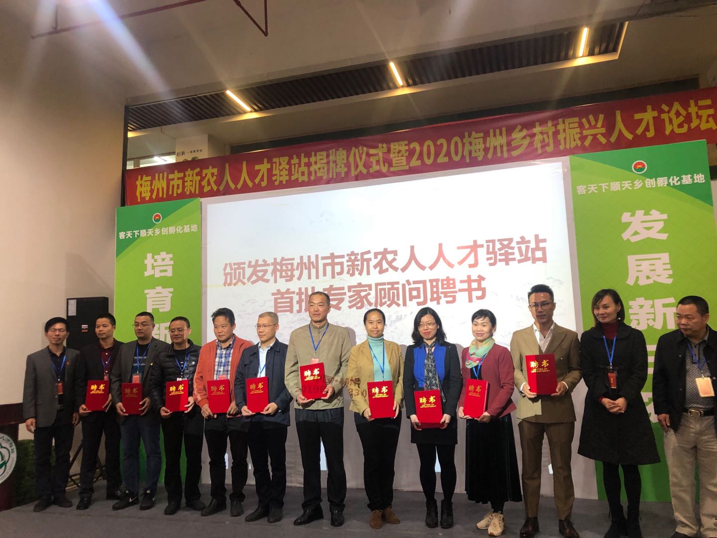 2019年12月30日,我院副院长王丽萍、贾莉副教授、李慧老师以及马安勤老师受邀参加以“驿站启动、招才引智、创业平台、服务乡村”为主题的梅州市新农人人才驿站揭牌仪式暨2020梅州乡村振兴人才论坛。在揭牌仪式上,梅州市新农人人才驿站与我院签署了梅州市“新农人人才培育”项目协议,我院院长米运生、副院长王丽萍等一批专家接受聘请,成为梅州市新农人人才驿站首批专家顾问。