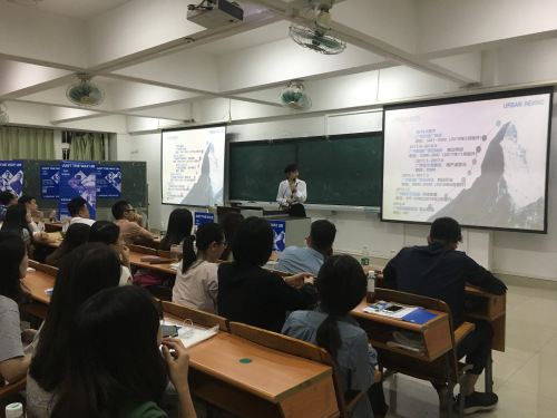首先,两位主讲人分别为总监以及首席人才官,向同学们全方位的介绍了URBAN REVIVO(简称UR)的发展历史、如今的市场地位以及该集团的企业文化。“感官享悦,玩味时尚”作为品牌理念,也充分展现了UR突破传统,持续创新的追求。