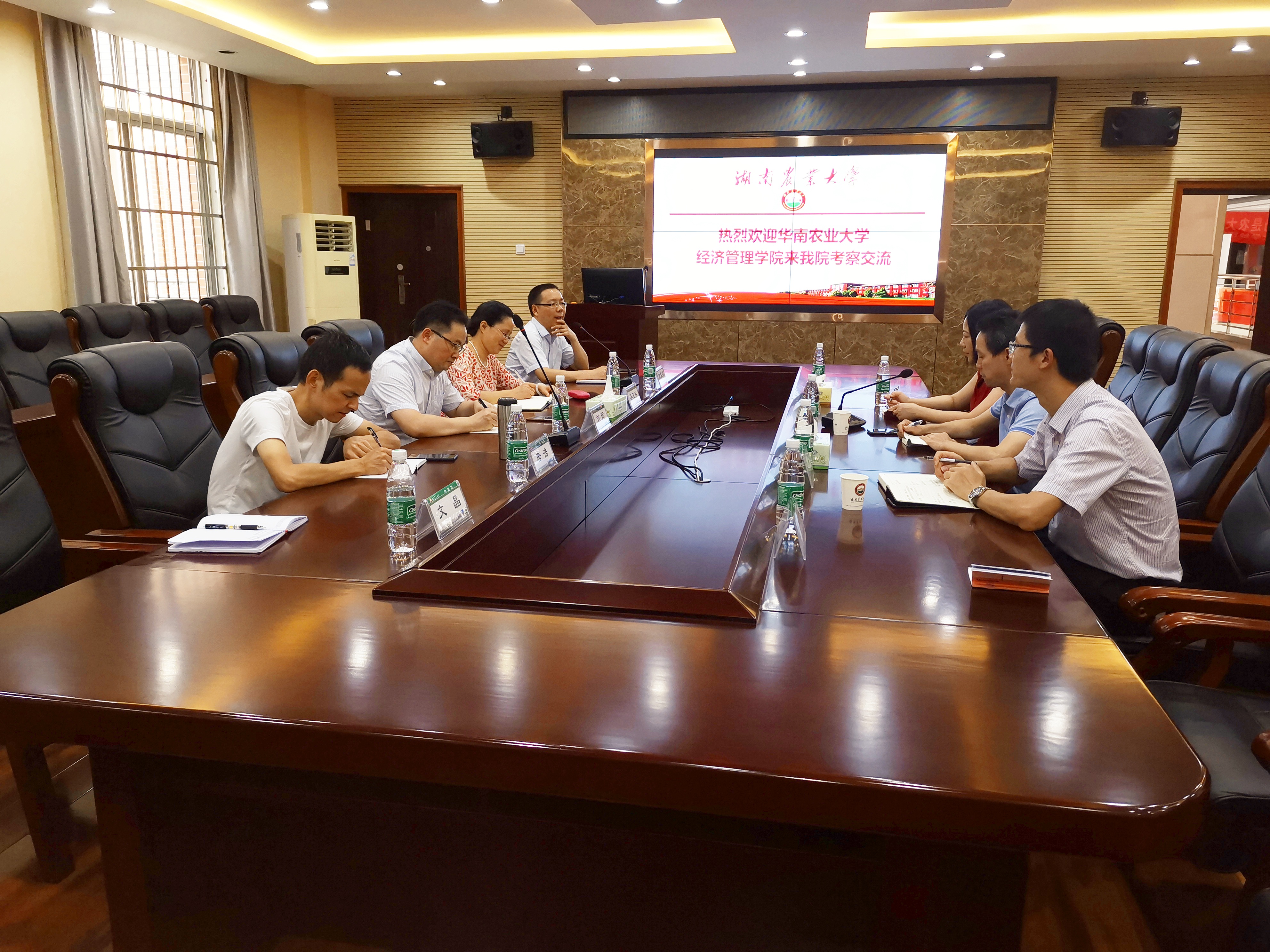 8月6日下午,米运生院长一行来到湖南农业大学经济学院进行座谈交流,湖南经济学院刘辉院长、吴玉宇副院长、唐浩副院长、学术委员会主任周孟亮教授、文晶老师参加了座谈会。刘辉院长首先对米院长一行表示热烈欢迎,然后介绍了湖南农业大学经济学院的相关情况,米院长随后介绍了yl6809永利官网的相关情况,最后双方在人才培养、学科建设、社会服务、党建工作等进行深入的交流和探讨。双方表示农业院校要在国家乡村振兴战略中发挥积极作用,彼此之间须要加强联系、密切合作、共谋发展。
