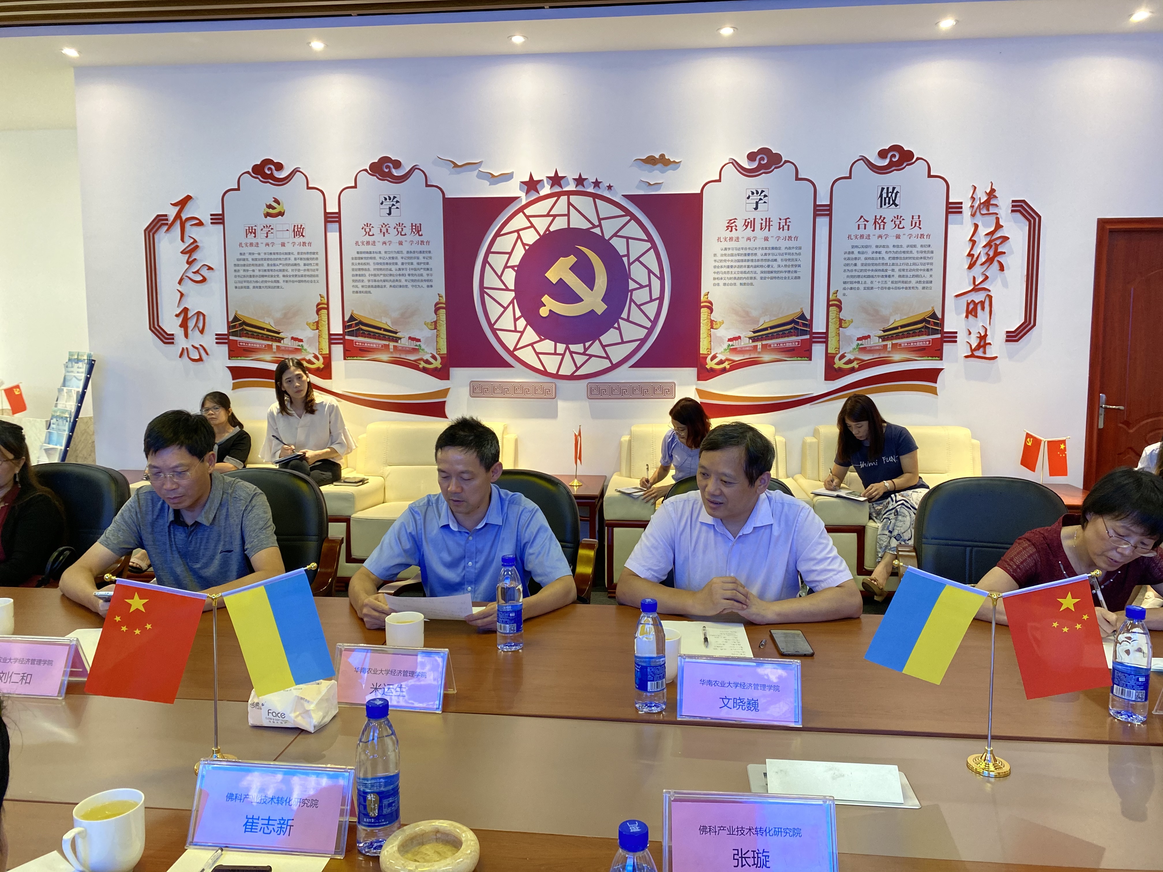 米运生一行与佛科产业技术转化研究院党委书记崔志新教授,院长陈建波教授,副院长张璇、余欢和张馨饶博士等进行了座谈,聆听了崔志新书记就佛科产业技术转化研究院发展历史、现状、技术开发等情况介绍。