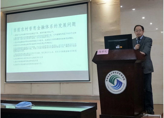2021年1月11日上午9时,紫荆学术论坛第144期暨普惠金融与“三农”经济研究系列论坛第二讲在我院601报告厅成功举行。我院有幸邀请到中国社会科学院农村发展研究所研究员,中国社会科学院研究生院经济学教授、博导,中国社科院中小银行研究基地副秘书长,中国社科院农村金融创新工程首席研究员、孙冶方经济学奖获得者冯兴元研究员作题为《中国的县域数字普惠金融发展与问题》的精彩讲座。会议由我院李琴教授主持。我院教师、硕博研究生共100余人参加了此次学术讲座。