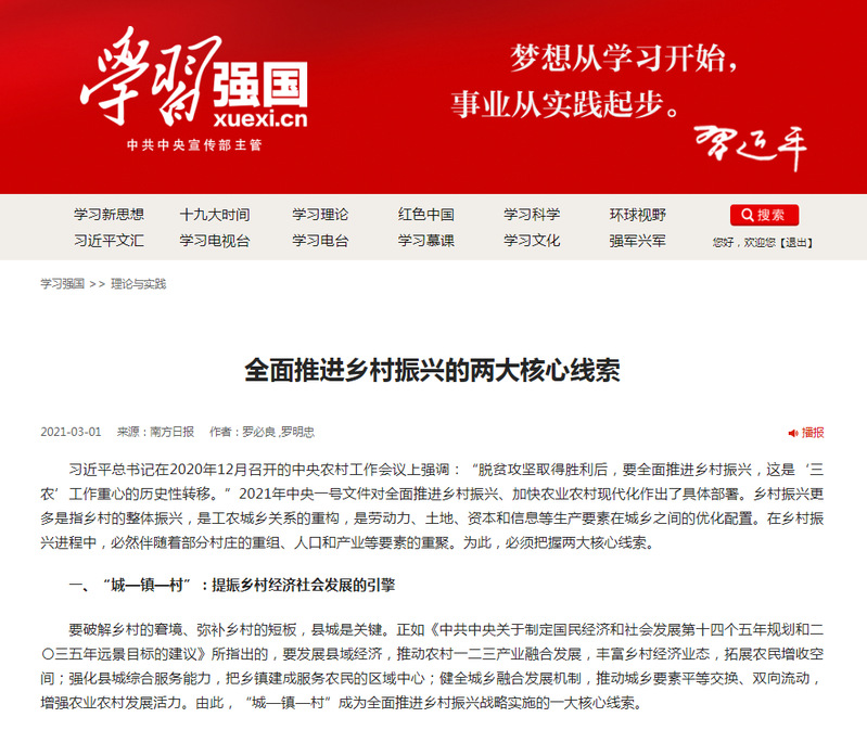 罗必良 罗明忠 (南方日报2021年3月1日,学习强国广东学习平台转发)