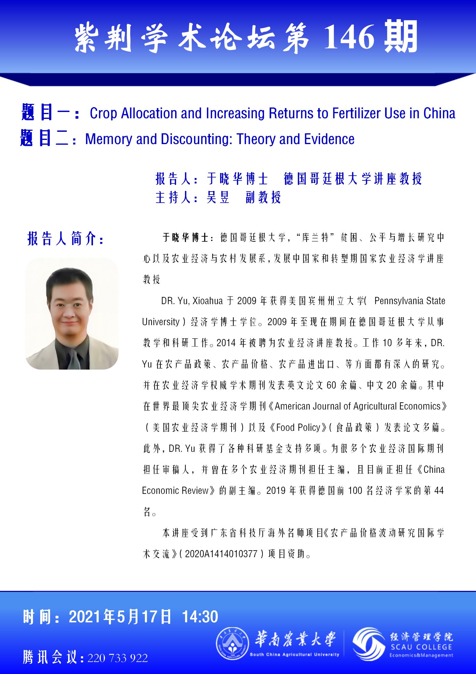 紫荆学术论坛第146期--学术报告通知(海外名师项目讲座)