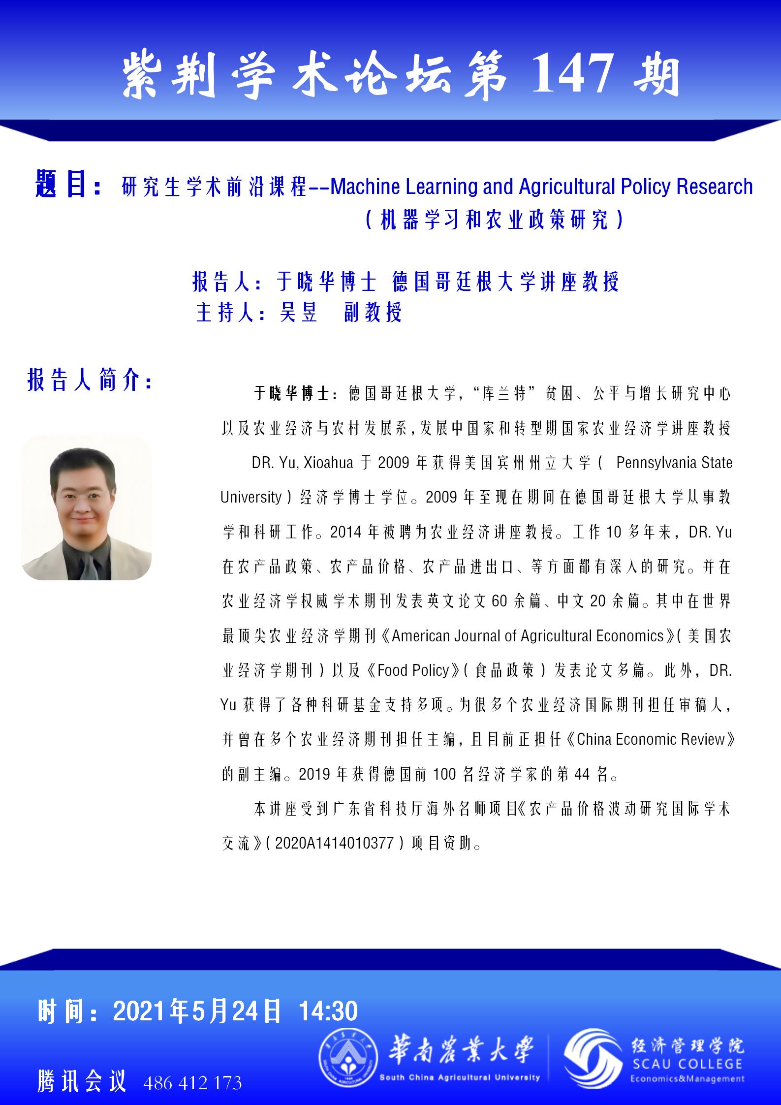 紫荆学术论坛第147期--学术报告通知(海外名师项目讲座)