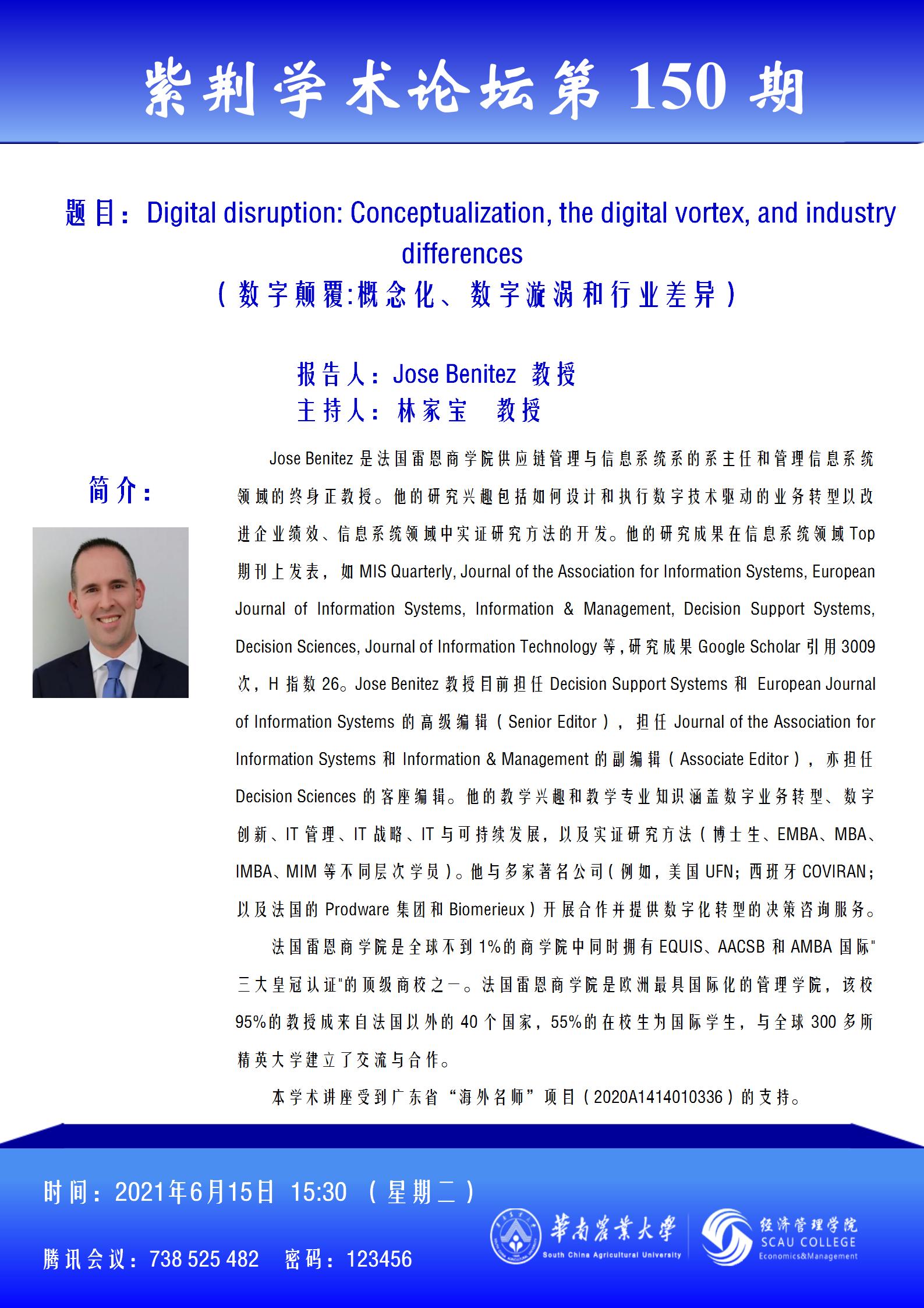 紫荆学术论坛第150期--学术报告通知(海外名师项目讲座)