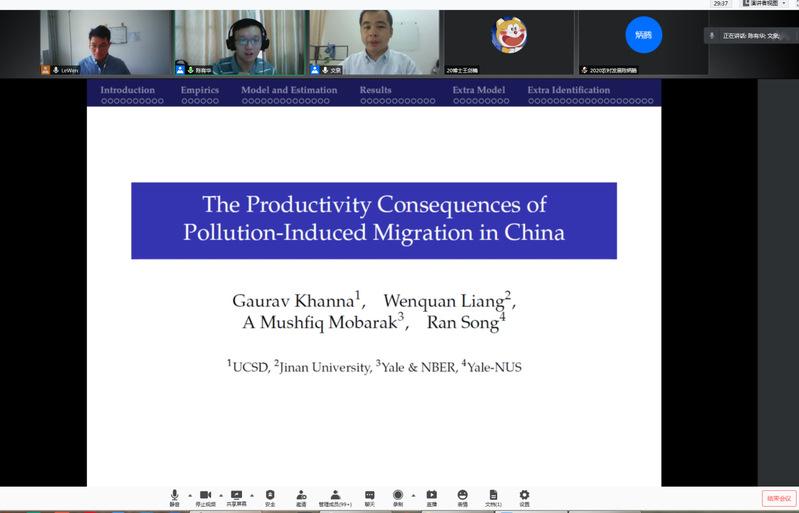6月10日上午,暨南大学经济学院副教授、硕士生导师梁文泉博士应邀做客第148期紫荆学术论坛,为我院师生作了题为“The productivity consequence of pollution-induced migration”的线上学术报告。报告由我院农业与应用经济学系系主任陈有华教授主持。