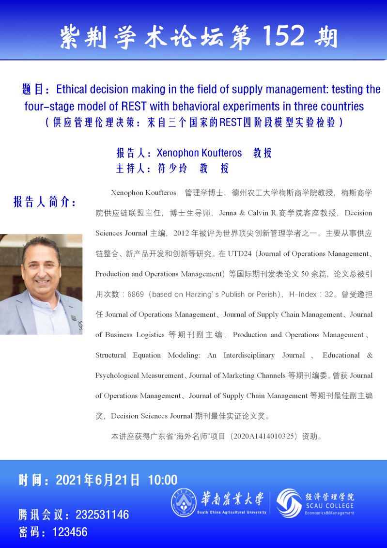 紫荆学术论坛第152期--学术报告通知(海外名师项目讲座)