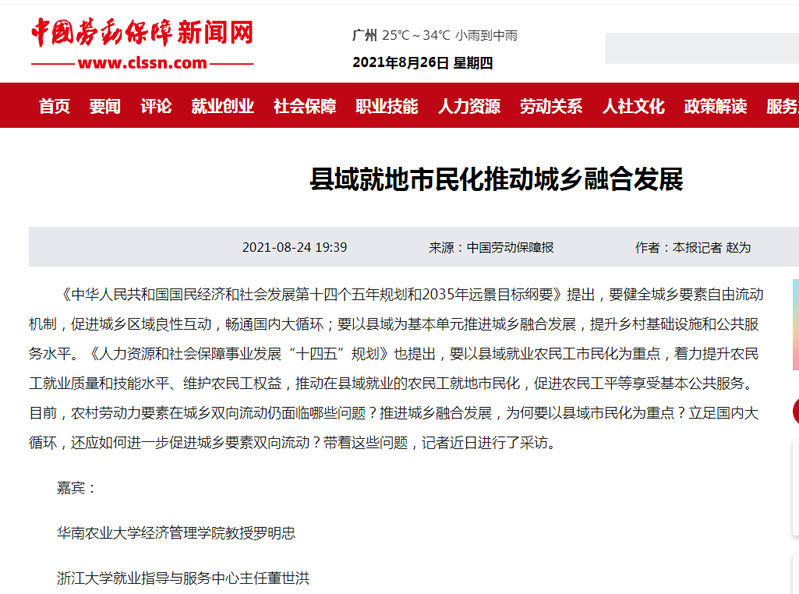 罗明忠:县域城镇是连接城乡发展的重要支点,是工业与农业的交汇处、城乡要素流动的连接点。县域城镇化既可以促进农业人口转移,推进农业规模经营;也可以促进要素流动,改善土地资源利用绩效。可以说,强化县域城镇的服务能力,推动农民工县域市民化,对完善城乡要素统一市场尤为关键。要加强县城综合服务能力建设,把乡镇建设成为服务农民工的区域中心。在此基础上,进一步扩大县域城镇的服务半径,增强县域城镇的区域辐射力,让更多农民工对城镇要素及其相关服务具有可获得性。