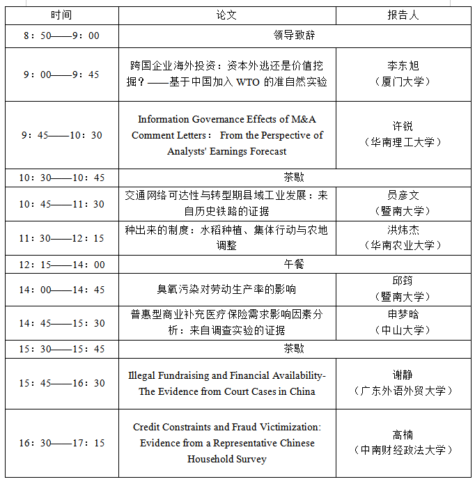 第27期香樟经济学seminar(广州)将于2021年9月11日在yl6809永利官网举行。本次Seminar收到大批高质量投稿论文,经组委会多方面考虑,最终选取8篇论文进行研讨。在此,特别感谢各位投稿作者。本期会议得到了《中国经济问题》和《产业经济评论》期刊的支持。相关会议信息如下: