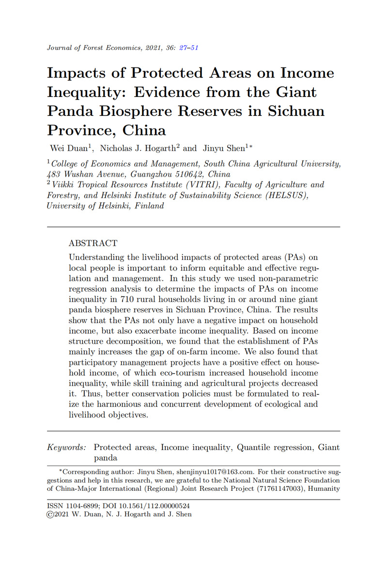 Protectedareas; Incomeinequality; Quantile regression; Giantpanda
