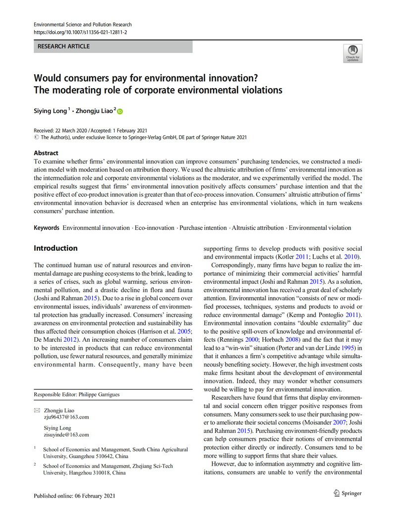 Environmental innovation; Eco-innovation; Purchase intention; Altruistic attribution; Environmental violation