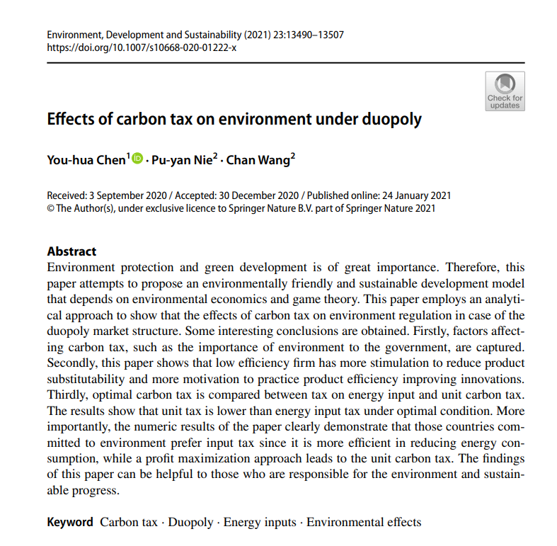 Carbon tax; Duopoly; Energy inputs; Environmental effects
