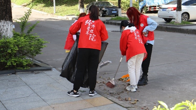 在服务同学的氛围感染下,同学们得以在亲身实践中感悟服务的意义,在躬行践履中获得为同学办实事的满足感。2021级专业负责人王大文同学表示:“每周末都会有一批同学认真清洁校园,净化同学们的生活环境。在清洁社区过程中,大家充分发挥不怕苦、不怕累的精神,彰显大学生的担当责任意识”。2021级工商管理类专业曾雨欣同学表示,“吃苦在前,享受在后,参加社区清洁让我深刻体会到劳动的光荣感和服务同学的满足感。作为一名共青团员,我将积极投身服务实践,增强服务意识,为美化校园环境贡献自己的力量”。