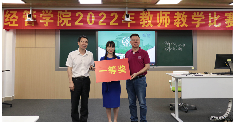 为了提高教师教学水平,全面提升人才培养质量,6月15日下午在学院新建成的智慧实验室,举行了2022年度教师教学比赛,8位参赛选手分别代表8个专业参加现场教学比赛。学院党委书记蔡传钦、执行院长罗明忠亲临现场为选手们加油鼓劲。本次比赛的专家评委来自学校本科生院、人力资源处、公管学院和本院教授,人气评委由各系教师代表组成,比赛由教学副院长谭莹主持,学院教师及教辅参加了观摩和学习。
