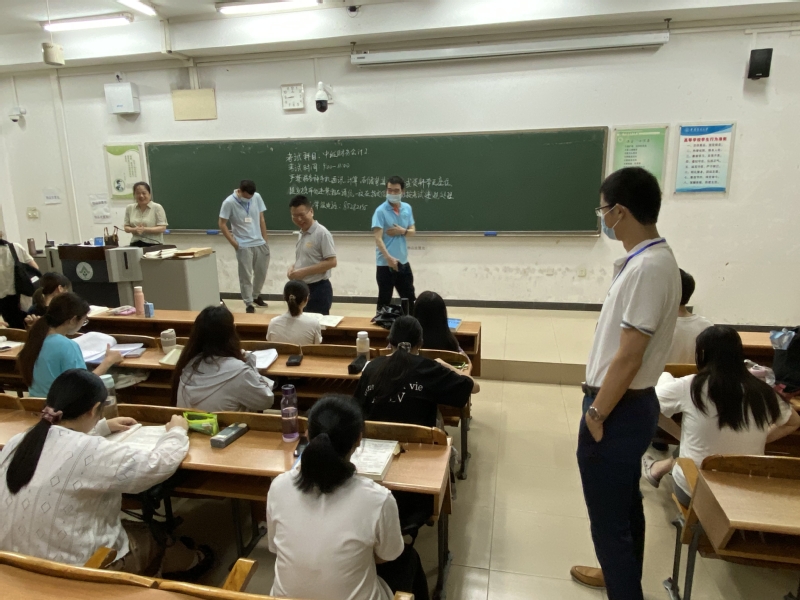 6月21日上午,我院党委书记蔡传钦,执行院长罗明忠带领党政班子成员前往教四考场开展本学期期末考试巡考。