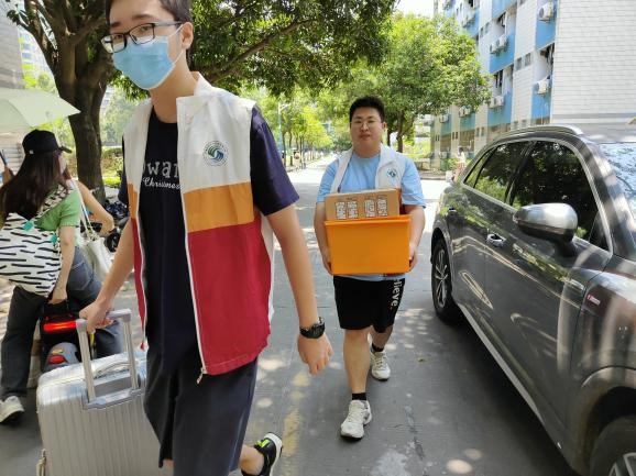 虽然处在考试周,复习压力大,天气也变化不定,但参与志愿服务的同学们服务热情不减,积极投身到志愿活动中。他们身穿红色马甲,秉持着“我为群众办实事”的宗旨,不断上楼下楼,穿梭于宿舍和校门口,尽管天气炎热,烈日和暴雨交织,不少志愿者都大汗淋漓、气喘吁吁,但是只要毕业生有需要,他们就立马前往给予协助,获得了学院师生的一致好评。毕业生们也严格遵守学院离校流程,积极做好宿舍清洁与物资归还工作,落实学院退宿离校要求,把良好的形象带给师弟师妹。