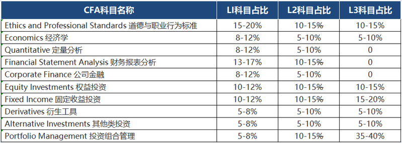 CFA考试分为三个级别,总共十个科目。学习CFA,熟悉金融行业各类金融产品,帮助学员全面了解金融市场的操作,掌握投资技能。