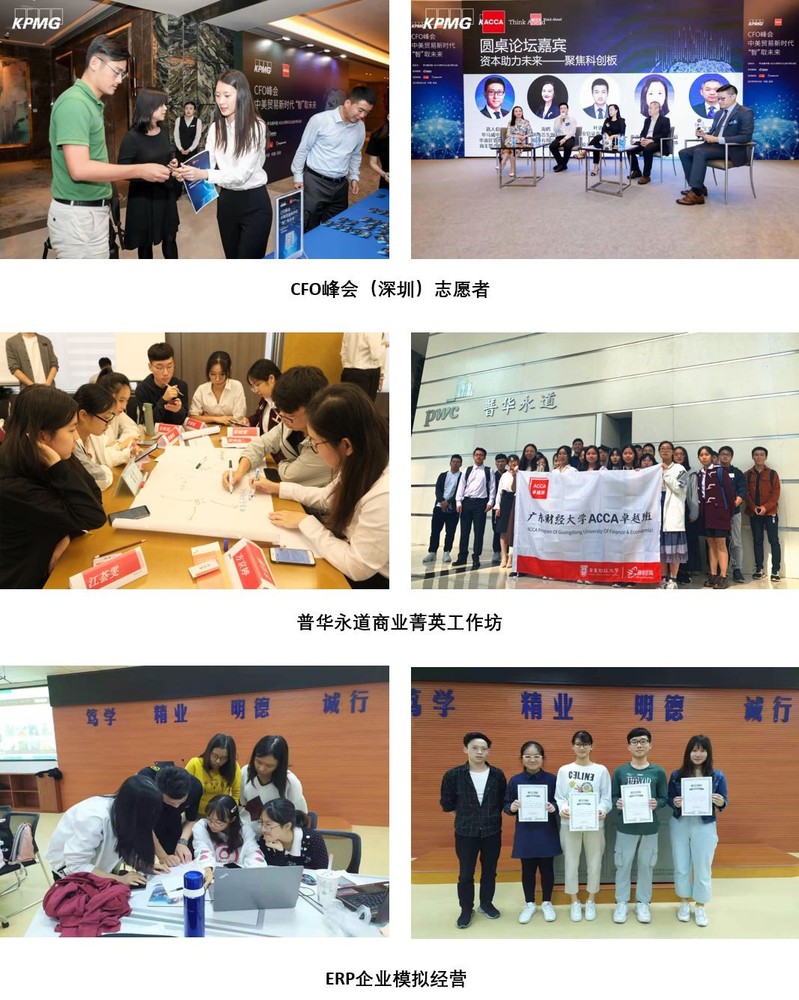 在读期间,班级会有一对一职业规划辅导,并针对开展普华永道商业菁英工作坊、ERP模拟沙盘、毕马威CFO峰会(深圳)志愿者等职业力活动。