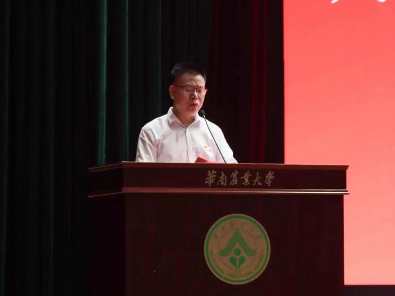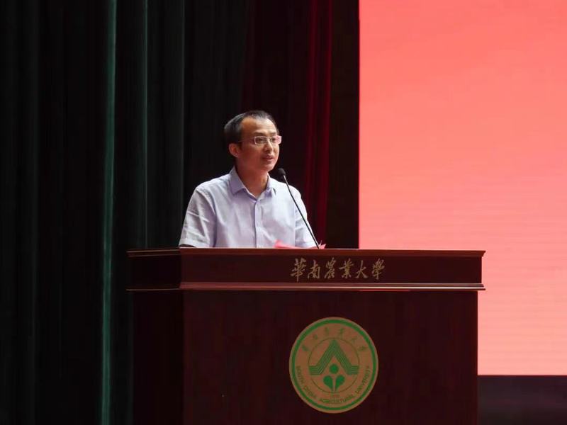 开学典礼在庄严的国歌中拉开帷幕。首先,执行院长罗明忠对研究生新生的到来表示热烈的欢迎,他向同学们详细介绍了我院的办学历史、师资力量和学科特色。他指出,今天恰逢“9•18”,我们要铭记历史,勿忘国耻;缅怀先烈,不负韶华,我辈当自强!同学们应牢记初心使命,有学以报国的大担当,积极投身国家乡村振兴战略。最后,他向同学们提出了四点期望,希望同学们学会思考、学会为人、学会担当、学会生活。