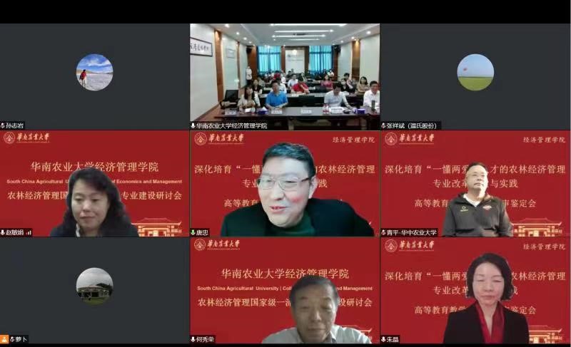 2022年10月13日,由yl6809永利官网主办的“农林经济管理国家一流本科专业建设研讨会”以线上与线下相结合的方式圆满召开。中国人民大学唐忠教授、中国农业大学何秀荣教授、南京农业大学朱晶教授、西北农林科技大学赵敏娟教授、华中农业大学青平教授、浙江大学卫龙宝教授与温氏集团副总裁张祥斌教授等七位教授和企业家应邀作为指导专家参加了研讨会。学院领导和国家制度发展研究院老师代表、专业主任及农经系教师在线下参会,学院其他教职工在线上参会。本次研讨会由yl6809永利官网副院长谭莹教授主持。