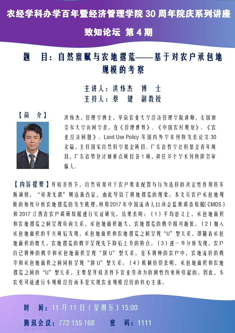 农经学科办学百年暨yl6809永利官网30周年院庆系列讲座:致知论坛第4期