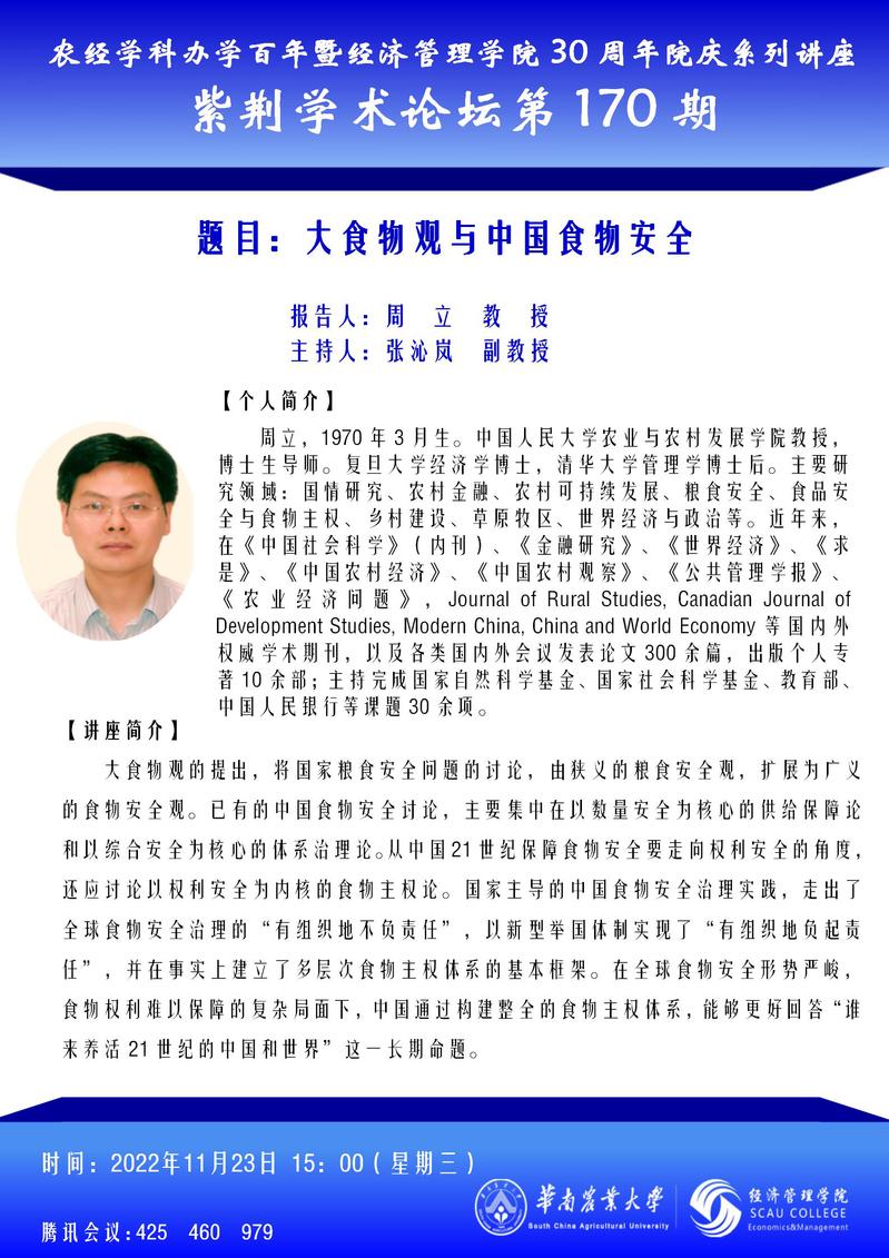 农经学科办学百年暨yl6809永利官网30周年院庆系列讲座:紫荆学术论坛第170期