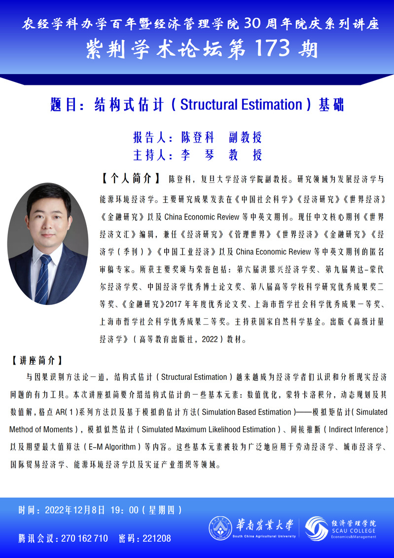 农经学科办学百年暨yl6809永利官网30周年院庆系列讲座:紫荆学术论坛第173期