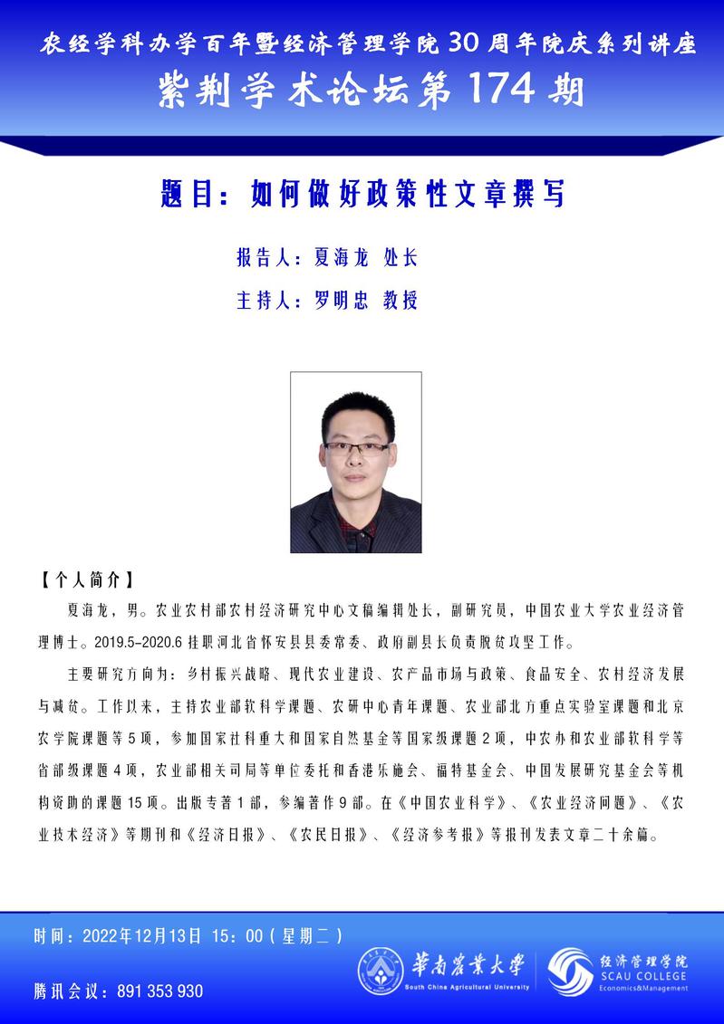 农经学科办学百年暨yl6809永利官网30周年院庆系列讲座:紫荆学术论坛第174期