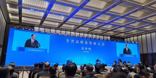 省委书记黄坤明在大会上讲话时表示,广东人口数量多、资源约束紧,提高发展平衡性和协调性的任务又很重,不可能继续拼土地、拼价格、拼劳动力,对这个问题,全省都要有清醒的认识。从外部看,我们现在又面临你追我赶的激烈竞争,这个时候,躺平不可取、躺赢不可能、奋斗正当时。唯有通过高质量发展向上突围,才能奔向发展的新蓝海;唯有以高质量发展的确定性应对外部环境的不确定性,才能任凭风浪起、稳坐钓鱼船。他表示,我们今天的奋斗,就是为了打造更多享誉世界的广东产品、广东企业、广东产业,建成国际一流的广东机场、广东港口、广东公路,涵育多彩多姿的广东山水、广东湖海、广东花木,传承充满浓浓乡愁的广东城乡、广东文化、广东韵味,让父老乡亲脸上充满幸福的笑容和希望。他强调,推动高质量发展,没有捷径,唯有务实务实再务实。在百舸争流、千帆竞发的新格局下,必须只争朝夕、迅速行动,以奋斗姿态抢时间、抢机遇,一刻不耽误地埋头苦干,把各方面的力量组织起来,把确定的任务落实下去。