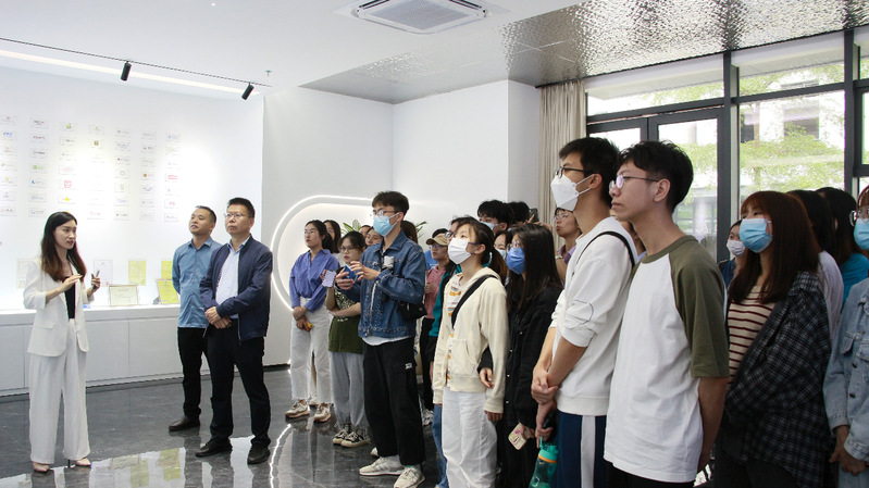 学院师生一行首先参观了集团的智能办公系统,对红海集团的主营业务、业务范围、相关成就、集团文化背景、创办理念和未来展望有更深入的了解。随后,由红海集团CEO孙伟向大家着重介绍了红海集团的人力资源智能终端系统、内部交流系统“红海云”、业务类型、覆盖范围和人才需求等,集中展示了人力资源管理变革趋势中的数字化方向:沟通数字化、数据全联通等。蔡传钦首先感谢了红海集团的热情接待,并向集团领导介绍了学院学科发展和人才培养等方面的有关情况,希望双方能进一步加强合作,特别是在人力资源管理专业的实践教学应用中能够搭建起合作对接平台。同时,他也期望同学们能够珍惜学习机会,明晰生涯规划,通过这样的实践锻炼拓展视野,不断提升自身的综合素质,实现全面发展。